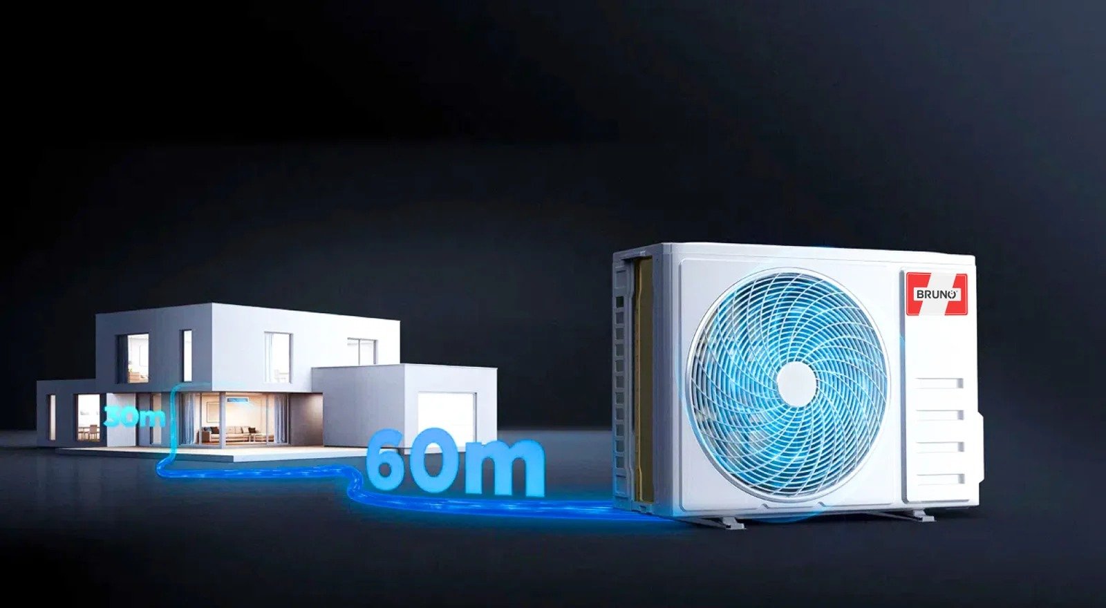 Njësia e jashtme mund të vendoset deri në 60 metra distancë nga e ajo e brendshme dhe deri në 30 metra lartësi.