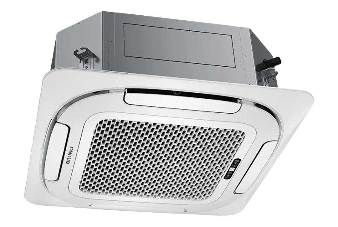 Brunoair Kasetore shpërndanë ajrin në 8 drejtime dhe ka kapacitet të fuqishëm ftohjeje dhe ngrohjeje, duke funksionuar në kushte ekstreme nga +58°C deri në -25°C, me qarkullim ajri deri në 2000 m³/h.