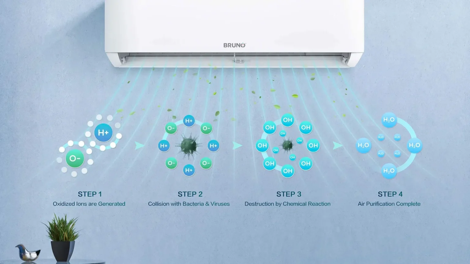Jonet e oksiduar shpërndahen në ajër, duke u përplasur me bakteret dhe viruset. Përjetoni një performancë të qetë, e cila është provuar klinikisht për të de-aktivizuar strukturat proteinike dhe për të neutralizuar toksinat në ajër.